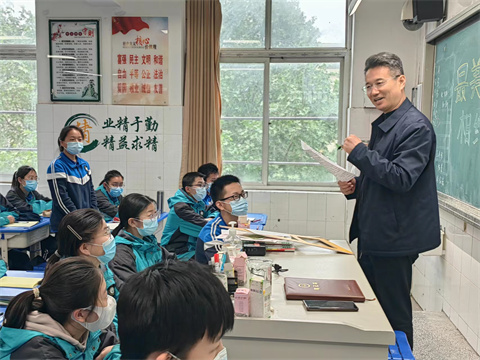 2023年4月21日下午,郑州市第五十一中学九九班教室里,校长白传忠带着他精心准备的“课堂内容”,在同学们激动又期待的目光中,笑容可掬地走上了讲台,上了一堂既高瞻远瞩又务实幽默的思想教育润心课。
