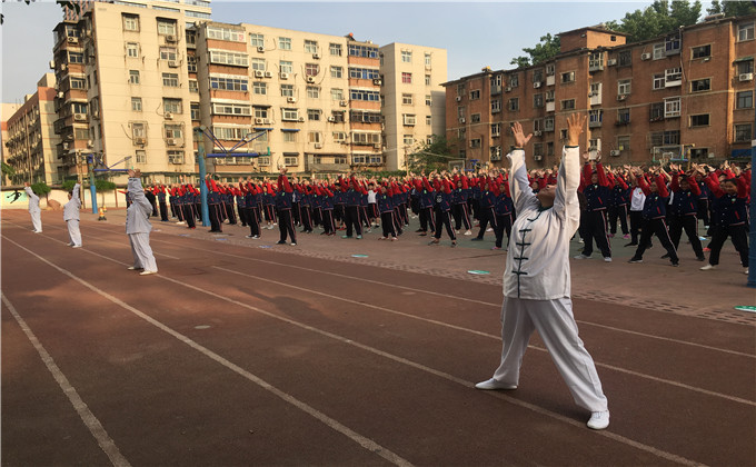 4月26日下午5点20 ,为了推广宣传非物质文化遗产“太乙拳”,郑州市太乙拳传习所选派顾鹏等七名教练员来到郑州51中教习太乙拳,让学生们近距离感受非物质文化遗产的魅力。