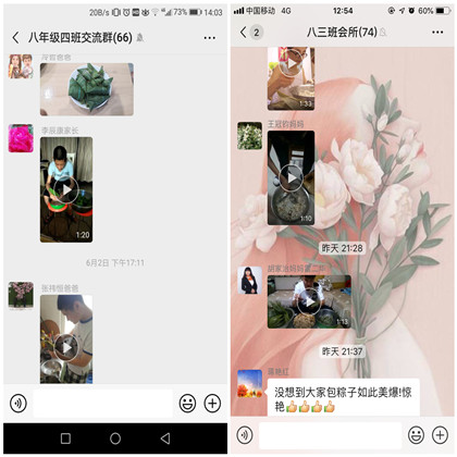 学校深度挖掘传统节日的文化内涵,充分发挥家校合作的助力,组织了与父母一起包粽子的家庭活动。同学们热情高涨,积极参与,纷纷在班级群里上传包粽子的视频。利用课余时间,同学们和家长一起买好包粽子的食材,简单学习包粽子的方法后,就开始实践了。折粽叶、装米、定型、打结,动作专业而熟练,很快一个个粽子就做好了。很多同学还把自己包的粽子带到学校,和老师、同学一起分享,自己包的粽子,吃起来格外香。简单的家庭活动,既增加了亲子的互动,也让同学们在动手的过程中,更加体会到传统节日的魅力。