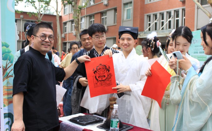 活动现场最具人气的就是印制“木版年画”体验活动。开封木版年画传承人、郑州51中非遗工作室任涛老师现场示范指导如何印制钟馗画像木版年画,并讲解“端午节一直都有挂钟馗画像的习俗,以示端午安康之意。”观众们更是积极参与,体验木版年画带来的非遗乐趣。